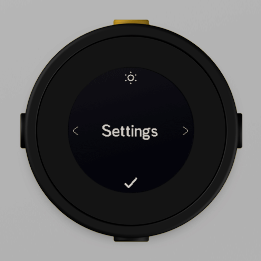 バックライトは暗くなると自動で点灯します。手動でオンにするには、Beeline Motoの右または左のボタンを押して設定メニューまでスクロールし、上部の(電源)ボタンを短く押してください。